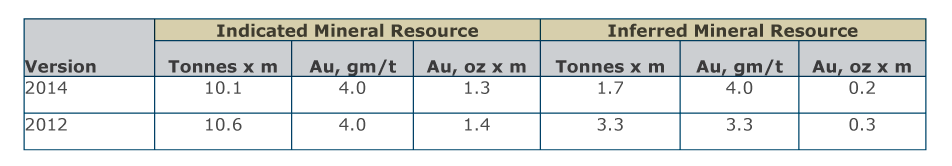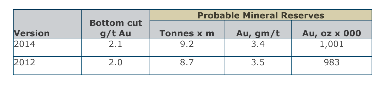 The updated LOM mine plan is based upon a refined geological interpretation and an updated mineral resource estimate for the Minapampa Zone of the Ollachea deposit. There has been no additional resource drilling at Minapampa since the 2012 DFS. The refined geological model and accompanying enhanced structural model allows for a more robust definition to the limits of the economically mineralized horizons. The updated mineral resource estimate, carried out by consultants GHD Group Pty Ltd (“GHD”) is based upon a significantly smaller panel size, more constrained search ellipsoids and a 2.0 grams of gold per tonne (“g/t Au”) cut-off (consistent with the DFS).